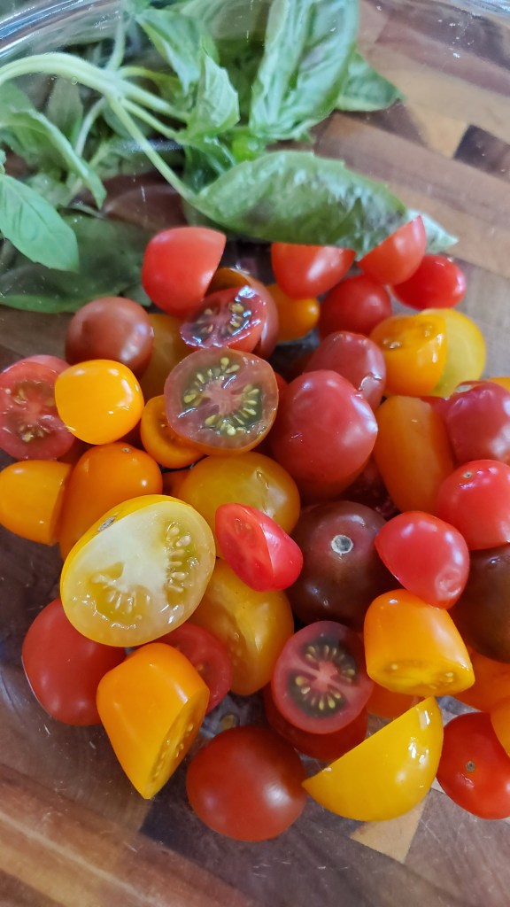 1 pint cherry or grape tomatoes, sliced in half