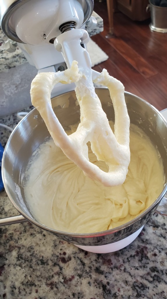 While your cakes are cooling, make your Cream Cheese Frosting…
