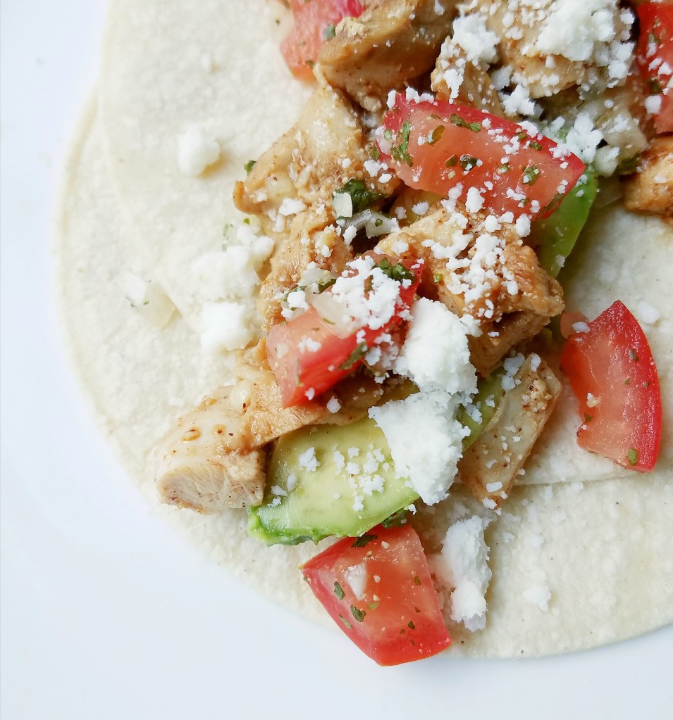 Once rested, dice grilled chicken into chunks. Build tacos with tortillas, slices of fresh avocado, pico de gallo, Cotija, fresh cilantro, and any other taco fixing you prefer. Enjoy!
