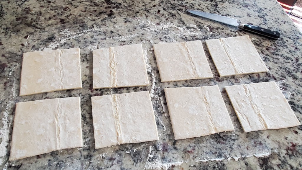 Once defrosted, cut the pastry into an even number of squares.