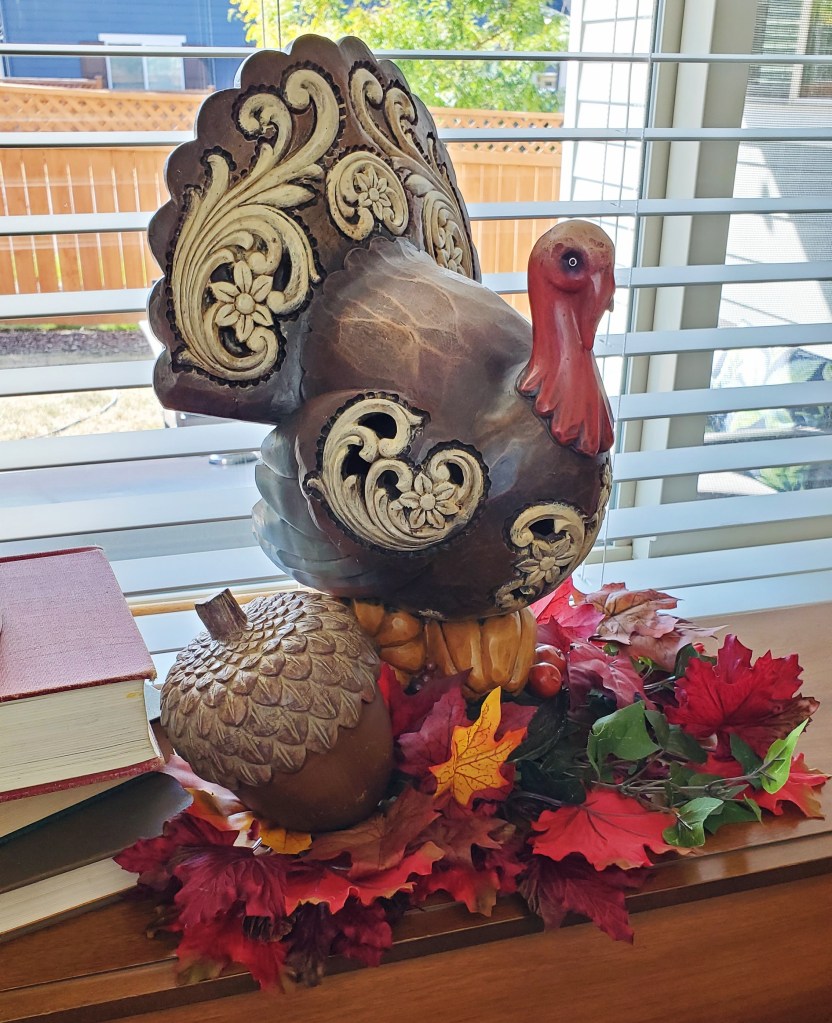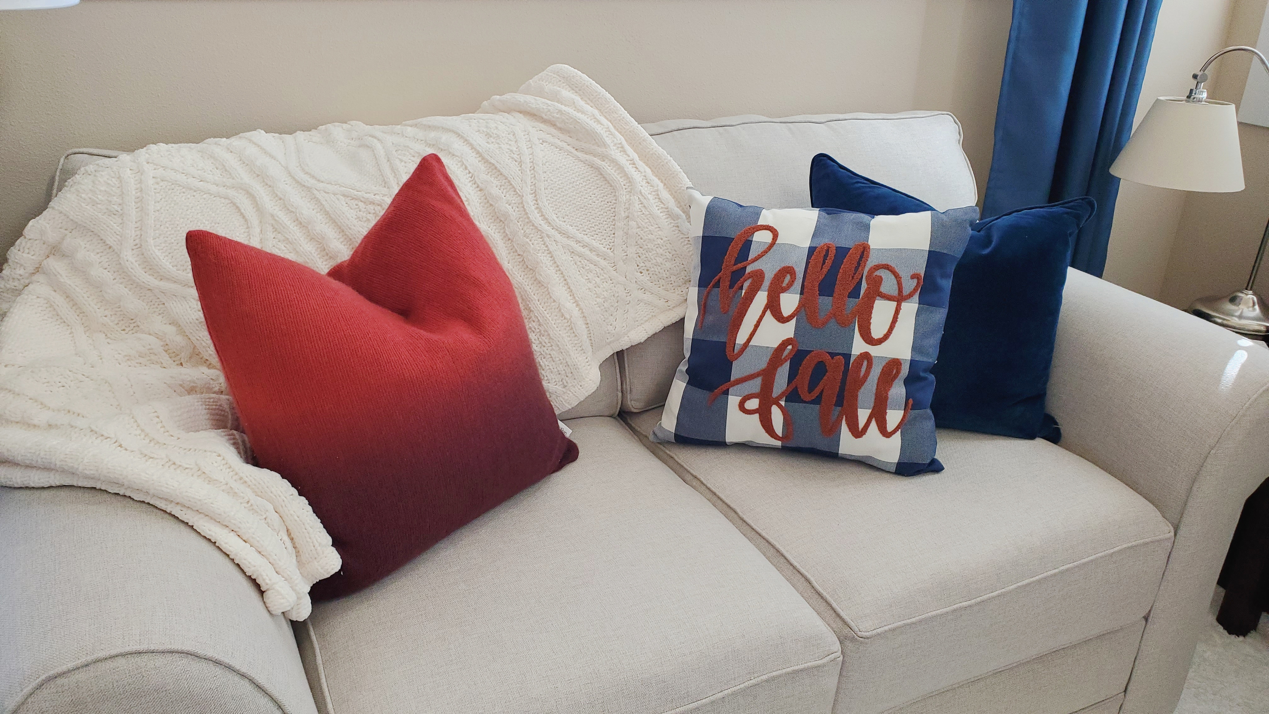 My difference is that I like to incorporate them with deeper jewel tones of the same color palette. In addition to soft pumpkin oranges, mustard yellows, and cool browns, our home is filled with deep jade greens, pomegranate reds, Mediterranean blues, and bright apple reds. These colors just pop off our mostly neutral palette walls and furniture while providing a much needed coziness for the cooler, shorter days.