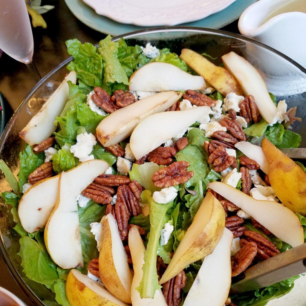 Pear, Bacon, Roquefort, and Pecan Salad