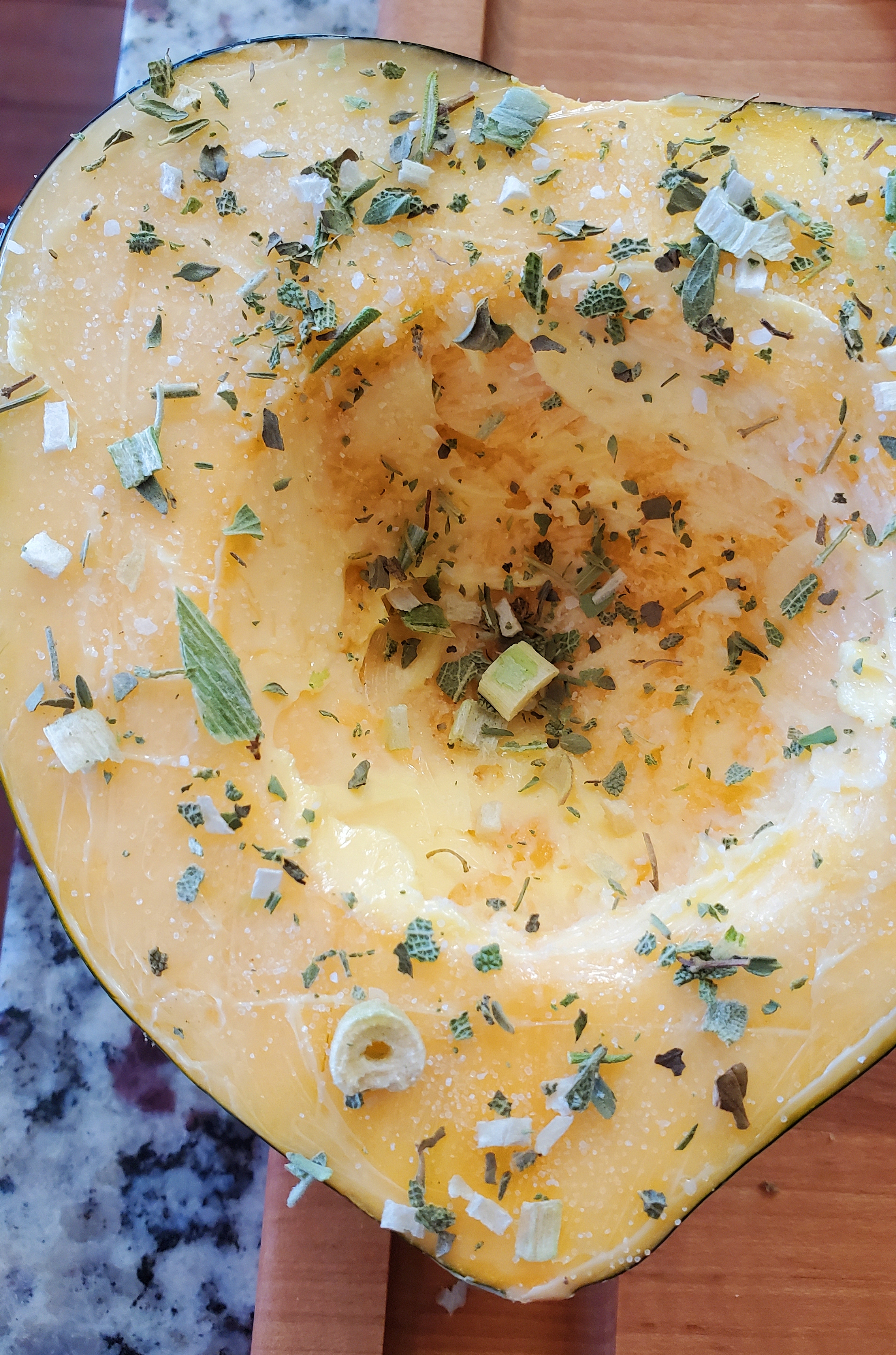Here’s where I admit my unpopular opinion. Unless the squash is being used deliberately as a dessert, such as sweet potato pie, I prefer my squash to be savory. I especially love when it’s dressed up with common poultry herbs and spices, such as garlic, sage, and tarragon.