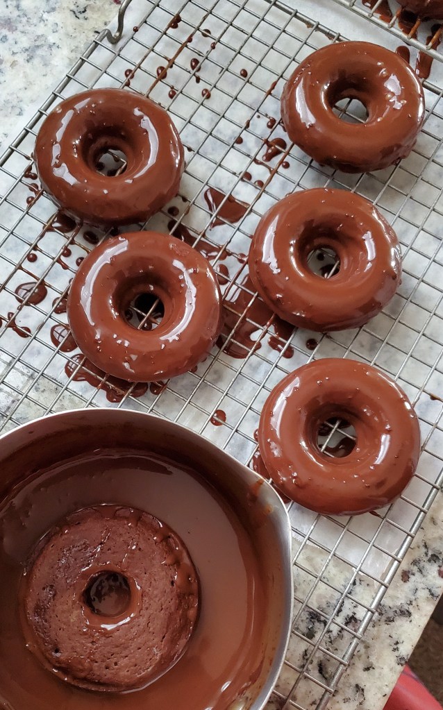 NOTE: If you don’t like the taste of coffee, you can simply omit the espresso powder from the entire recipe, making them plain chocolate donuts.