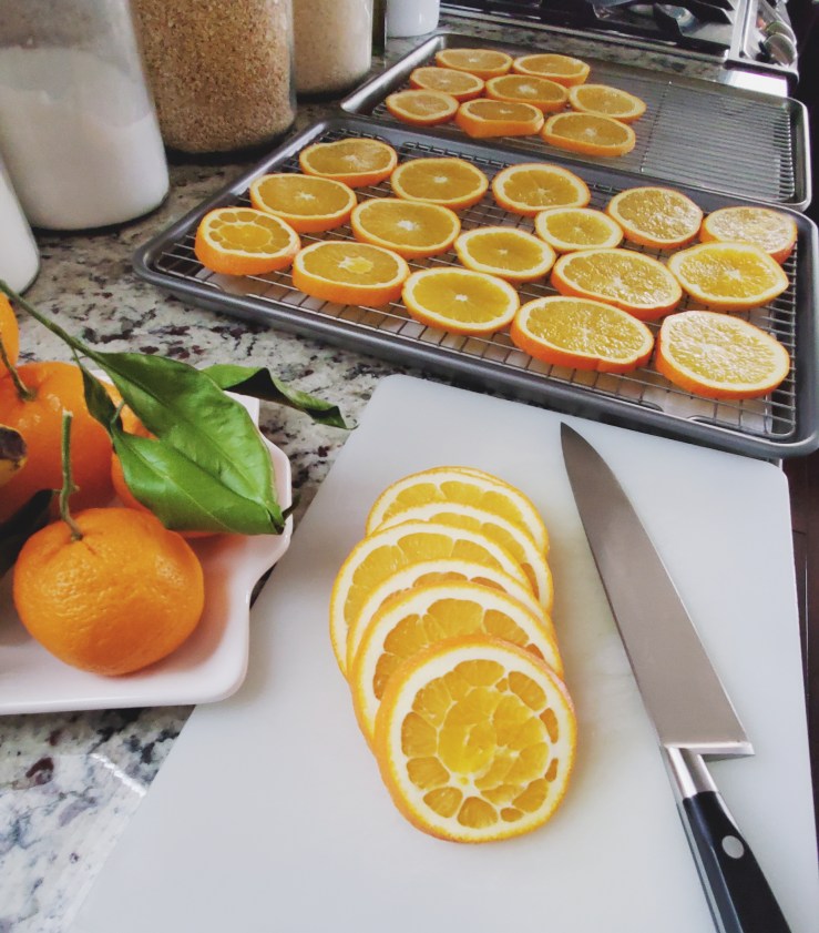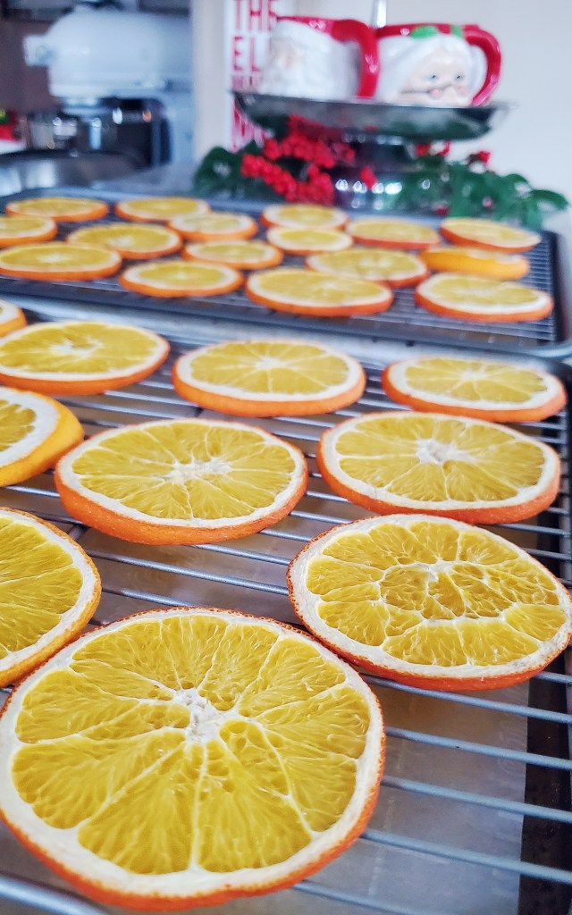 Oranges are easier to come by nowadays, but the history endures. So each year, we make dry orange slices to keep the tradition alive. In addition, the oranges are beautiful and fill the house with a delicious scent while they’re drying, especially when combined with all the warm spices of the season!