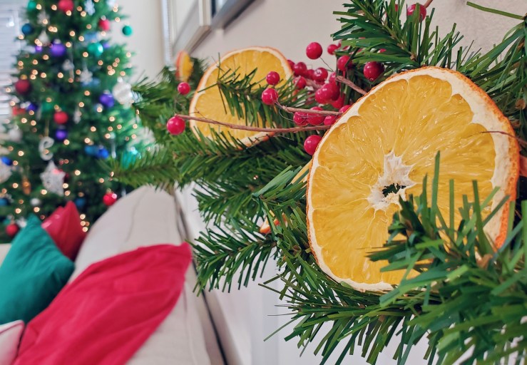 NOTE: these fresh slices can only be used temporarily; they don’t contain any preservatives and won’t survive until next year. So be sure to remove them before you pack up the rest of your decorations at the end of the season, or you’ll have a mold problem next year!