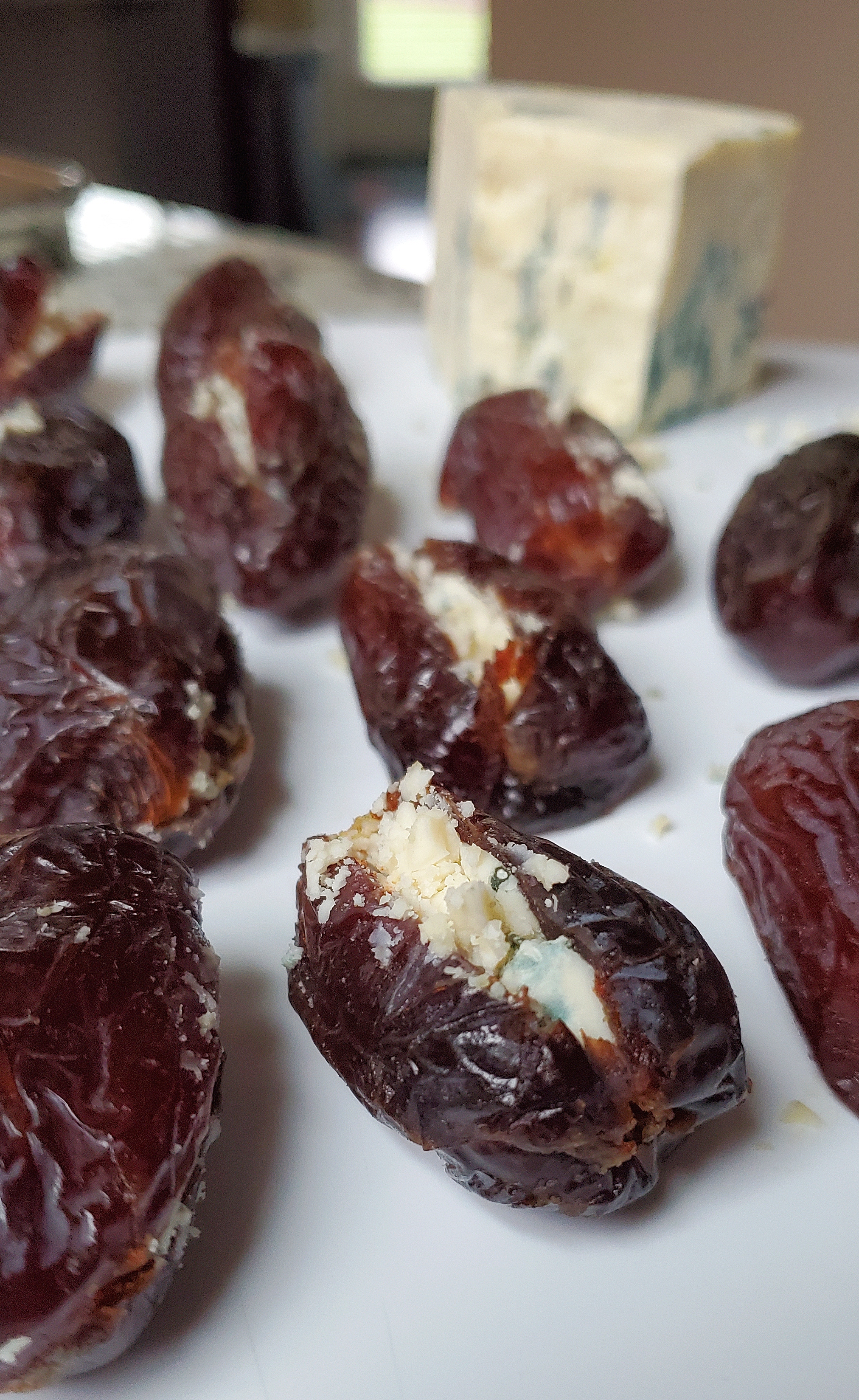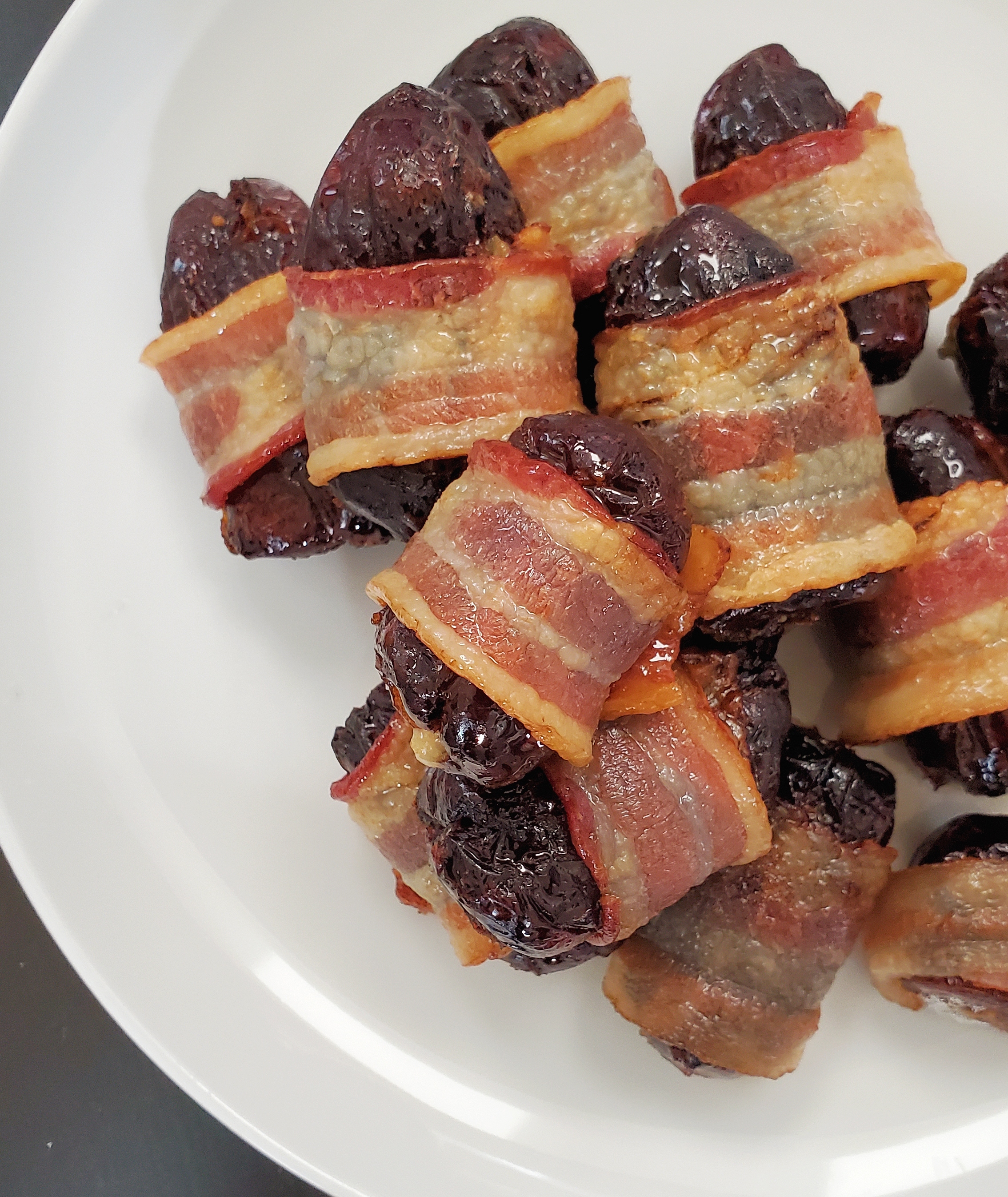The last winter in-season ingredient we’re celebrating is dates. We’re combining these versatile fruits with tangy blue cheese and bacon to make delicious sweet-and-salty single-bite appetizers!