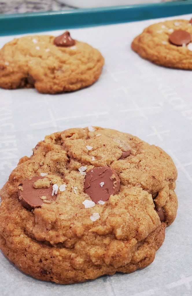 There are three elements that set this recipe apart. The first is that the butter is browned before adding to the dough, providing a nutty flavor profile to the base. The second is cinnamon. Adding this non-traditional spice creates almost a snickerdoodle flavor to the dough that beautifully compliments the chocolate. The third and final element is espresso powder. It deepens the flavor of the chocolate chips.