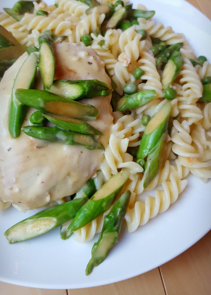 Chicken, Asparagus, and Peas in Lemon Cream Sauce