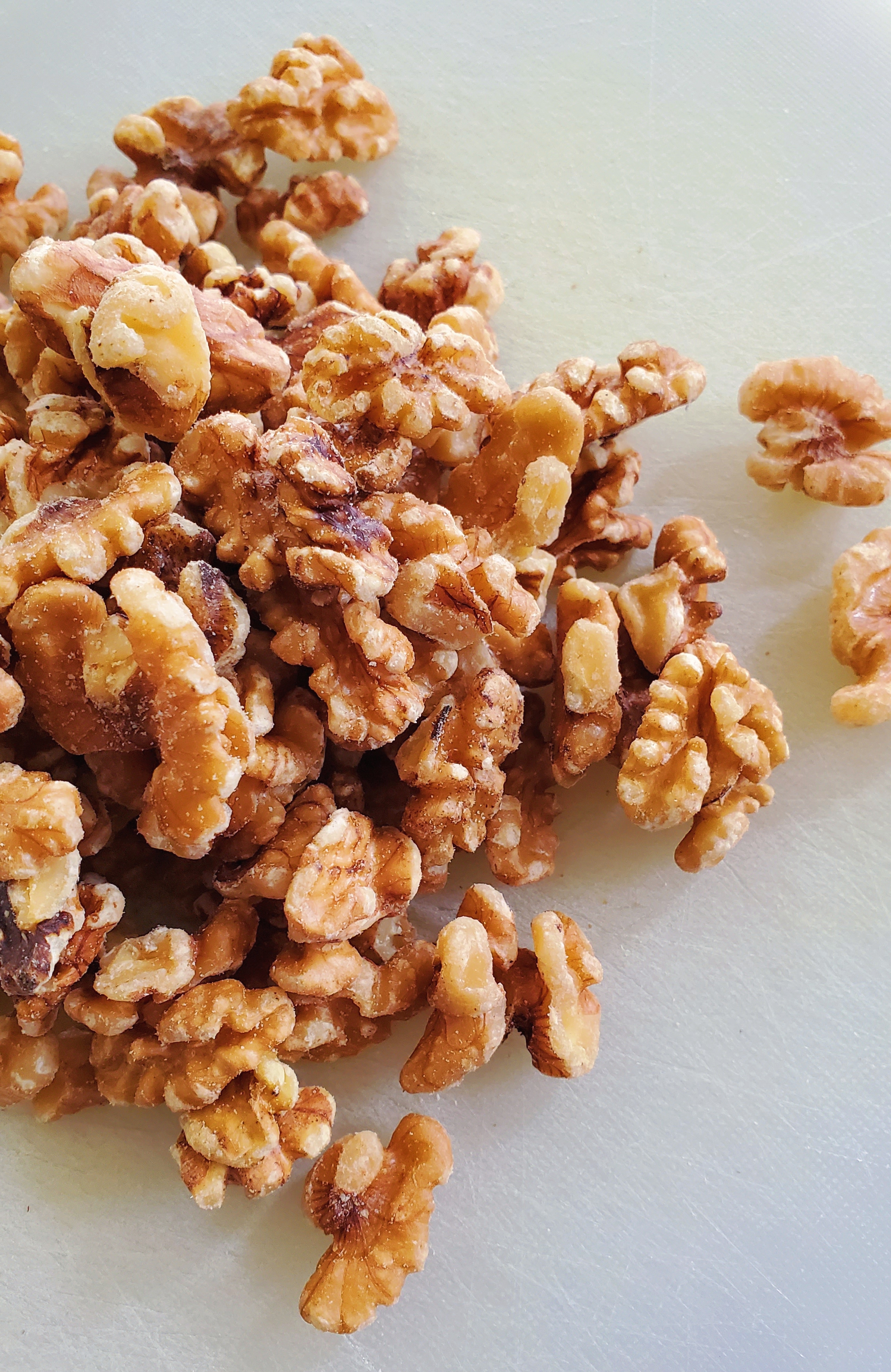 Toasting your walnuts first will develop more flavor! Simply roast them in an 350F oven for 7-10 minutes. Keep an eye on them, however, as they can burn quickly!