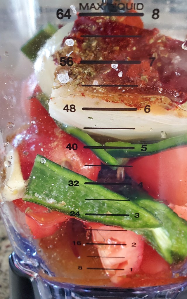 Roughly chop the onion, then cut the garlic cloves and serrano chiles in half. Place the tomatoes, onion, garlic, serranos, and water in a Dutch oven or other covered pot. Set the Dutch oven or covered pot over medium-low heat, and cook until all ingredients are slightly softened, about 20–25 minutes. (Alternatively, you could place all of the ingredients on a sheet tray, sprinkle them with water to allow them to steam, and cover them with aluminum foil. Roast in an oven that has been preheated to 275°F until cooked through, about 30 minutes.) Once the vegetables are cooked through, remove the Dutch oven or covered pot from the stove and allow to cool for 10 minutes. Once cooled, transfer all the ingredients to a blender, along with any accumulated juices. Add epazote and blend on high speed until smooth, 1–2 minutes. Season with salt and set aside.