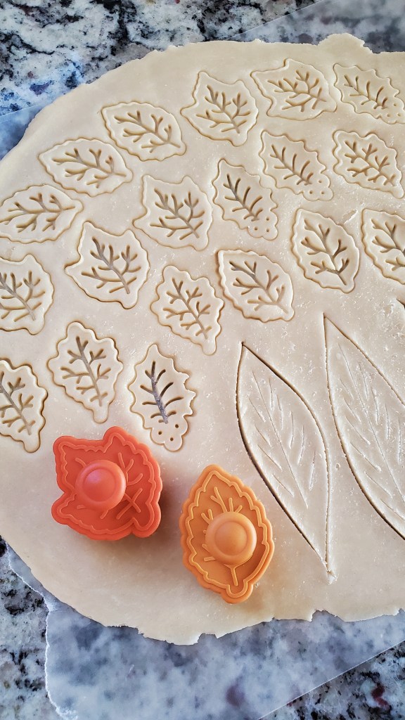 TIMESAVER TIP: You don’t even have to make anything from scratch! This works great with refrigerated/frozen pie crust and a premade pie from the freezer section/bakery of your local grocery store. Just make sure, before you start, that your pie is baked through and cooled completely. Also, defrost your frozen pie crust completely before cutting out your designs. (It’s okay if your frozen pie crust cracks while defrosting; just knead it into a ball again and roll it out with a rolling pin.)