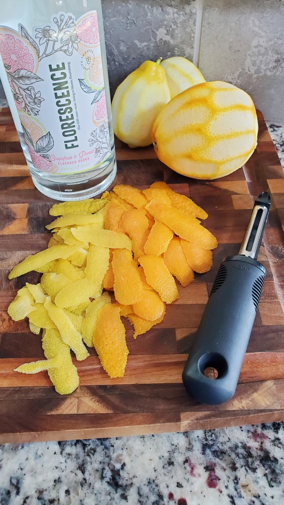When Danielle from Rustic Joyful Food handed me a bottle of her new grapefruit and pomelo flavored Florescence Vodka, I immediately knew what I was going to do with it. I loaded up the entire bottle with organic lemon and orange peels, and it’s currently infusing in my pantry!