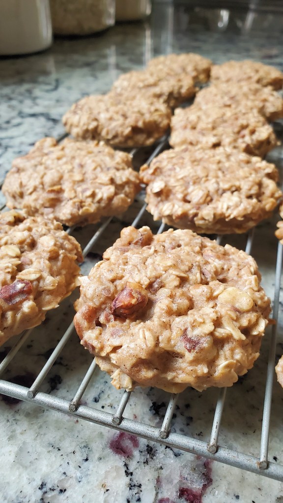 More importantly, however, these “cookies” do a fantastic job masquerading healthier ingredients as something indulgent! They have all the beloved flavors of traditional banana bread, but they’re significantly better for you. You’d never guess there is no processed sugar, and the nutrient-dense flax seeds practically disappear once they’re baked. My husband calls them “banana bread cookies”, oblivious to the fact that, unlike traditional banana bread, they’re helping his digestion and his heart health, all while not spiking his blood sugar.