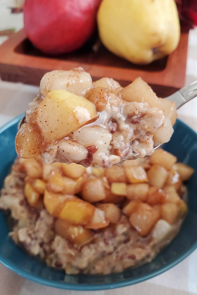 But frankly, the healthy benefits come second to how delicious this stuff is! The natural sweetness from the pears, the maple syrup, the vanilla, and all the warm flavors from the apple pie spice work so well together. This is how oatmeal should always taste!