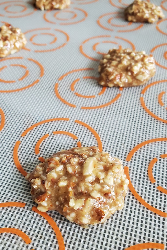 Preheat your oven to 325F. Line 2 baking sheets with silicone mats or parchment paper (silicone mats result in more even baking).