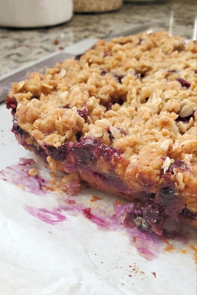Getting excited for warmer weather and all the delicious fruits that come with it? I certainly am, and these bars are a fantastic recipe to keep on deck for all those blueberries you’re going to pick this summer. The cream cheese filling and fresh berries meld together to create a delicious jammy layer, sandwiched between a shortbread cookie base and crumbly oat topping. This even works with frozen berries, so you can enjoy these year round, if you so choose!